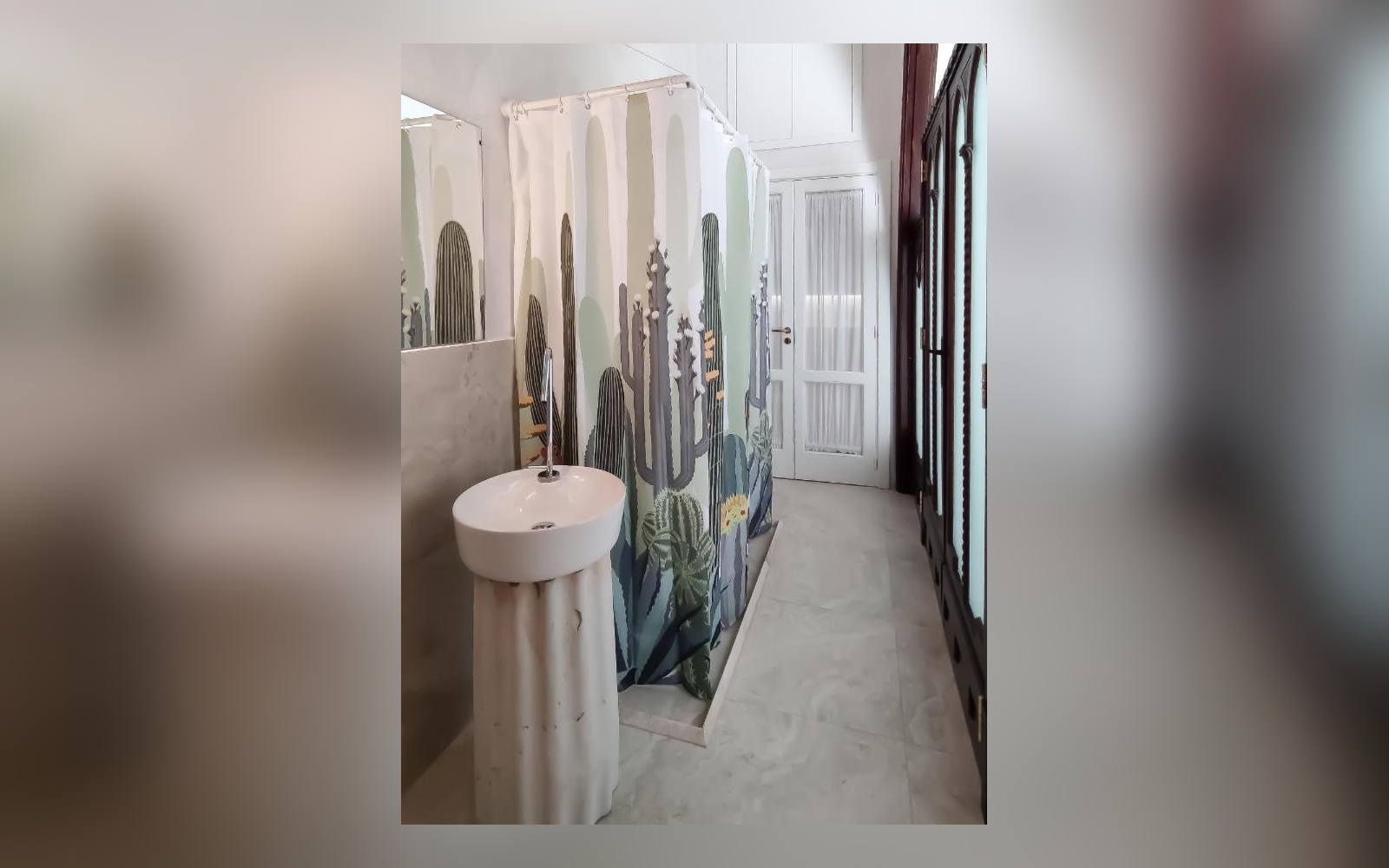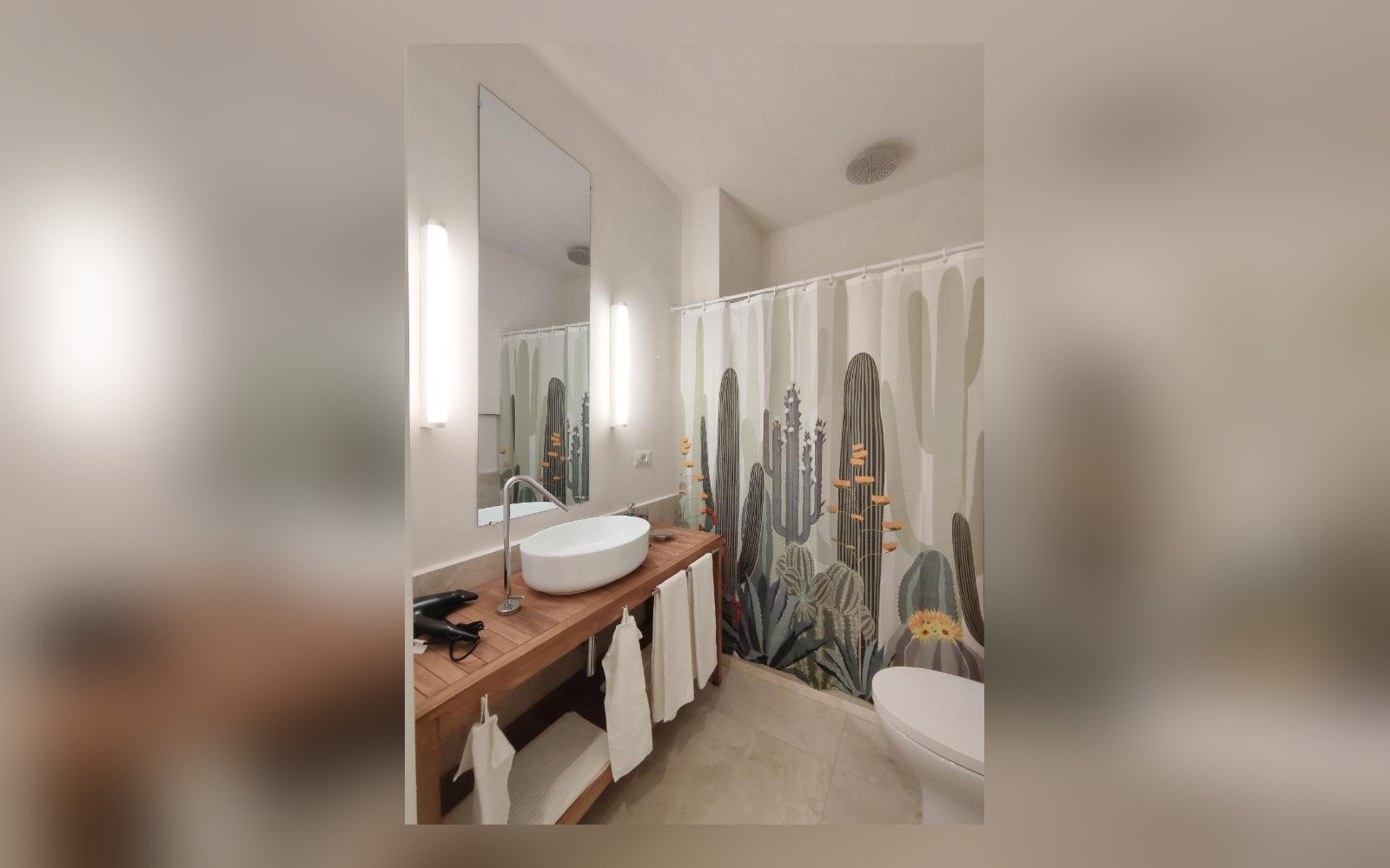 Una stanza calda e accogliente, caratterizzata da toni mediterranei, balcone ad affaccio e terrazza in comune con gli altri alloggi di 200 m2 e design ricercato. Pensata per coppie in cerca di intimità, combina stile, luminosità e comfort, offrendo un soggiorno piacevole e rilassante.